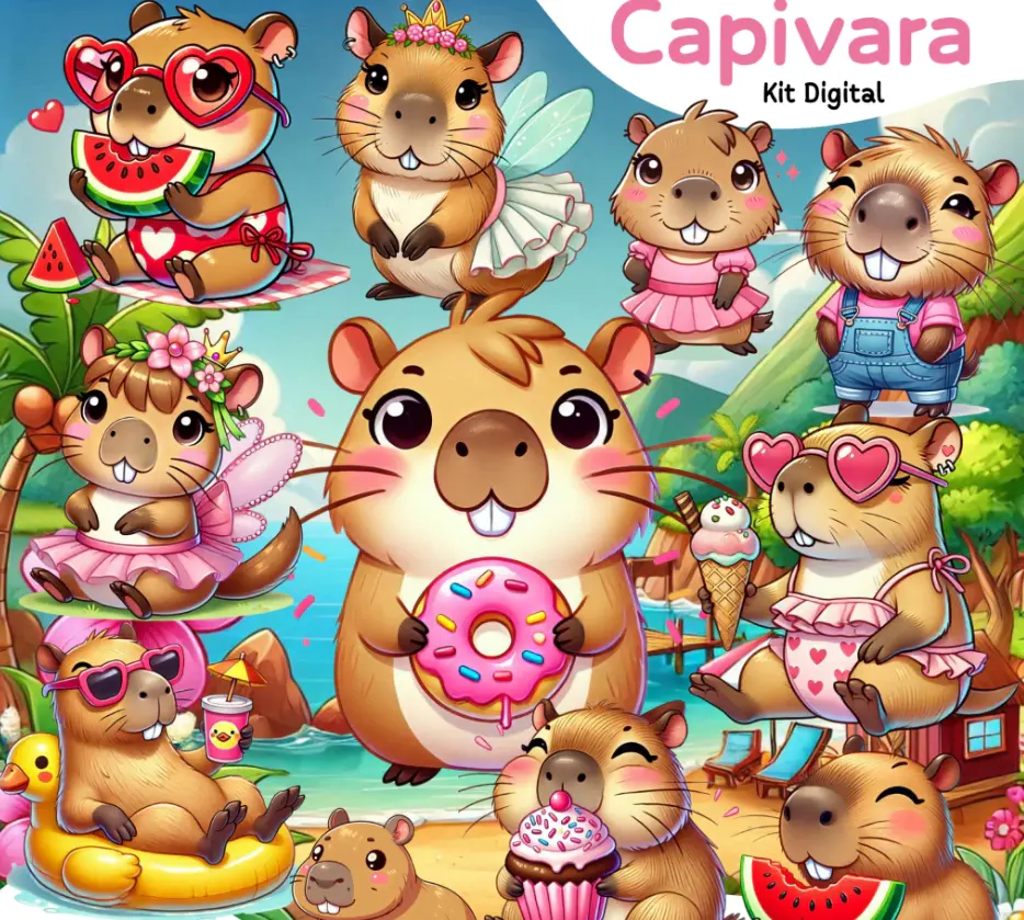 Apresentamos o Kit Capivara, uma coleção encantadora para elevar seus trabalhos criativos. Com ilustrações detalhadas e temas adoráveis, este conjunto oferece versatilidade para diversas aplicações.