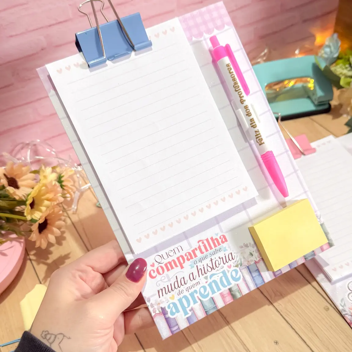 Transforme suas criações com este encantador conjunto de prancheta, bloquinho e caneta em estilo lettering, perfeito para adicionar um toque especial aos seus projetos.