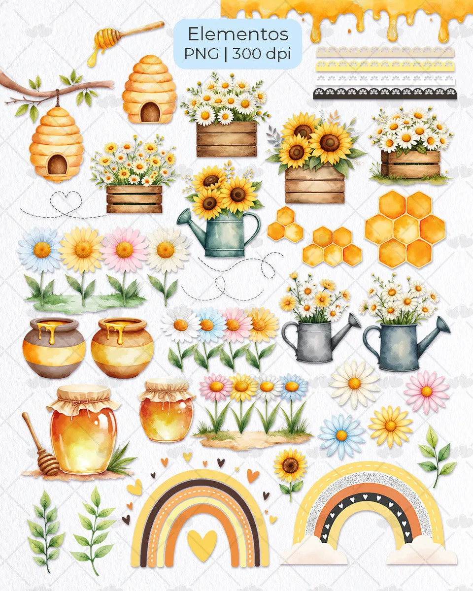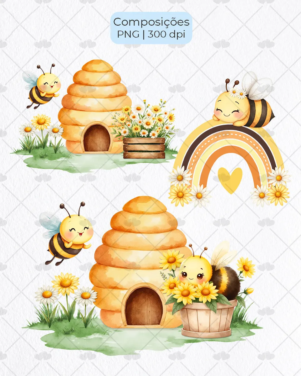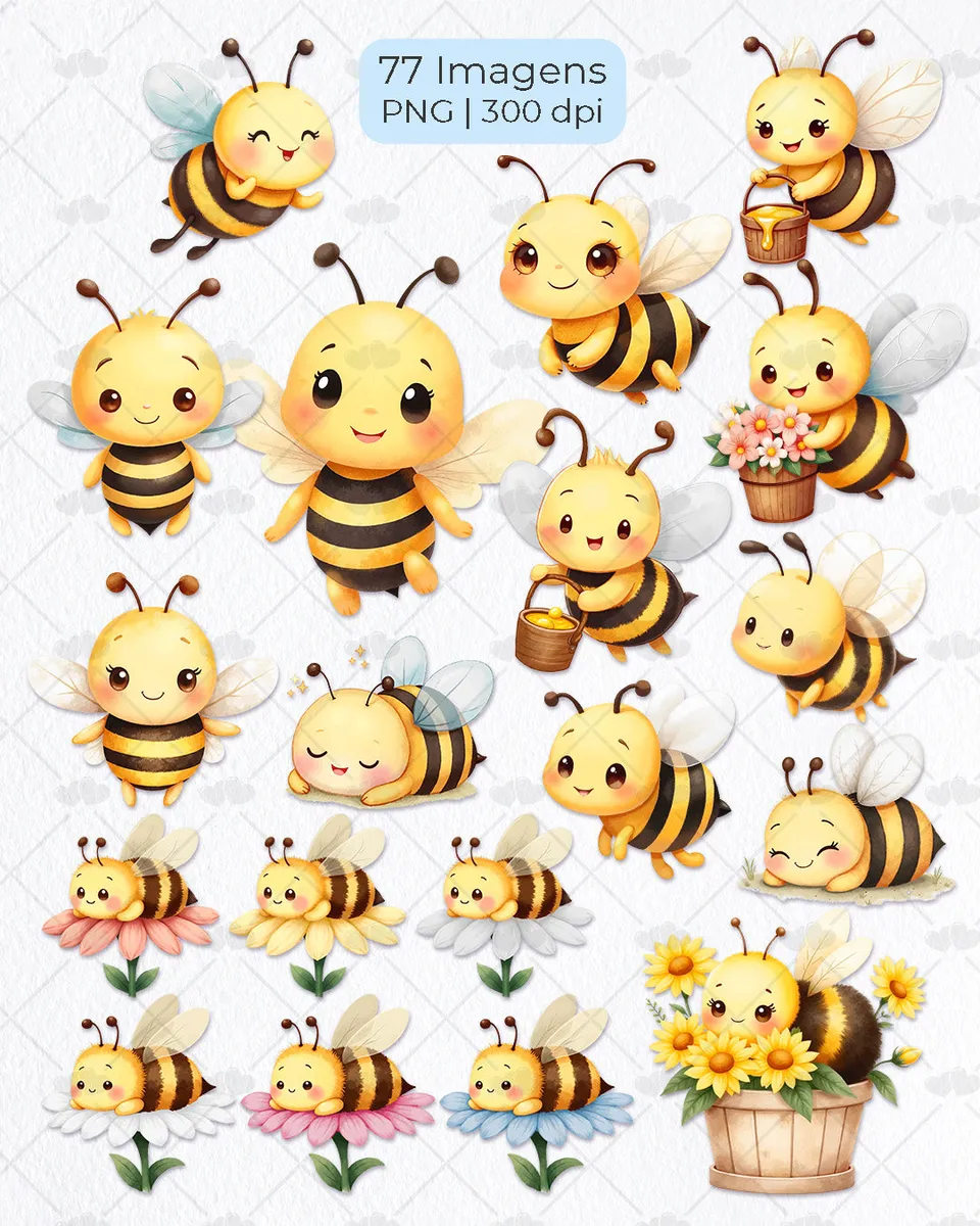 Explore a delicadeza e o charme do tema abelhinhas com este conjunto de elementos ilustrativos. Perfeito para agregar valor e beleza aos seus projetos criativos, oferecendo versatilidade e um toque especial a cada criação.