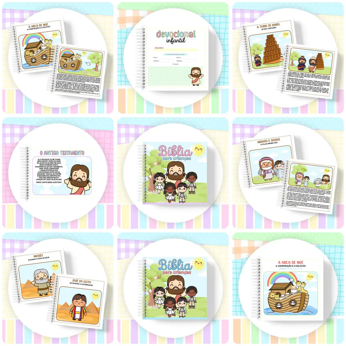 Um conjunto completo e encantador para atividades infantis com temas bíblicos, ideal para momentos criativos e educativos. Inclui materiais ilustrados e prontos para uso, com foco em qualidade e praticidade.